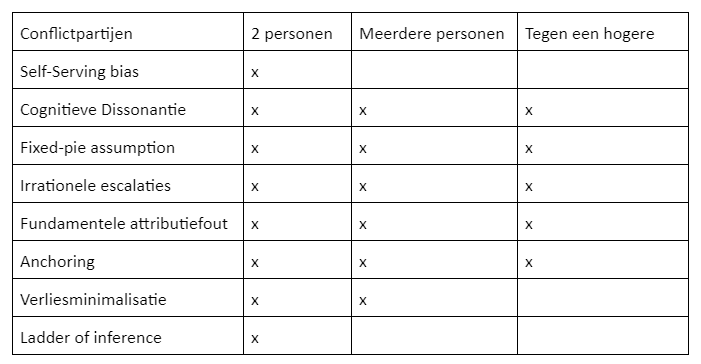 - Fixed-pie assumption: In het begin denken alles over elkaar te weten, maar later blijkt dat er meer speelt.